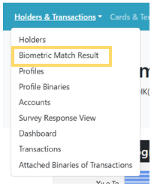 ![]() | Step 1:Select “ Holders &Transactions” from the menu and select “Biometric Match Result” from the list. |