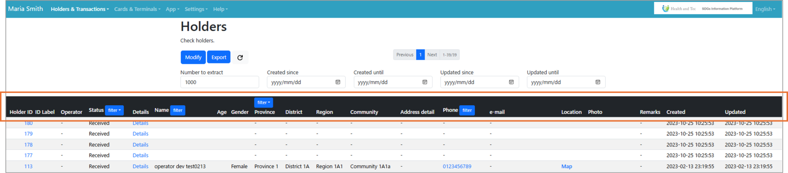 | Opérateur | Opérateur ayant enregistré le titulaire |