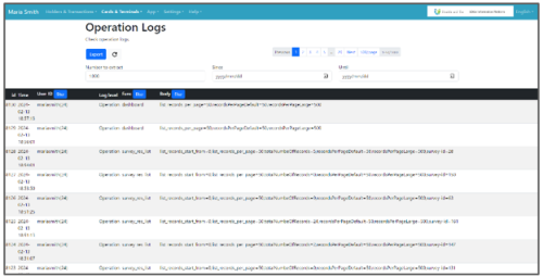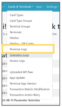 ![]() | Étape 1 : Sélectionnez « Cartes & Terminaux » dans le menu, puis choisissez « Journaux des terminaux » dans la liste. |