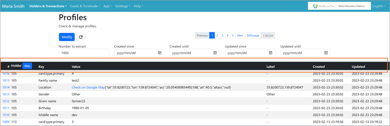 | Mise à jour | Date et heure de la dernière mise à jour des données |