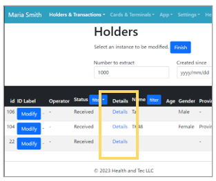 ![]() | Step 1: Click “Details” of the holders whose information you want to view. Note: The list displays holders who have registered their profiles through the application. |