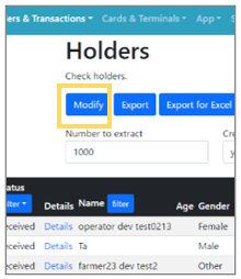 ![]() | Step 1:Click the “Modify” button on the top page of Holders. |