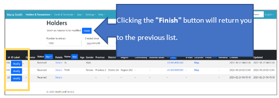 ![]() | Step 2:The edit screen for the list of holders will appear. Click the “Modify” button to make edits. |