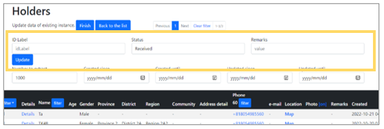 ![]() | Step 3:Update the information for the selected holder, then click the “Update” button to save your changes and complete the editing process. |