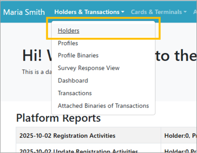 ソースの表示以前のリビジョンバックリンク文書の先頭へ Share via Share via... Twitter LinkedIn Facebook Pinterest Telegram WhatsApp Yammer Reddit Teams最近の変更Send via e-Mail印刷パーマリンク × 3. データの閲覧 3.1 ホルダー/ Holders Holdersでは、アプリでプロファイルを登録したホルダー(保有者)の一覧を参照・編集できます。 Step 1:メニューから「Holders&Transactions」を選択し、リストから「Holders」を選択 Step 2:アプリからプロファイル登録を行った保有者の一覧が表示されます ja/holders.txt 最終更新: 2025/11/20 17:39by editor