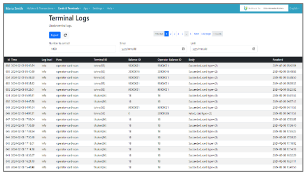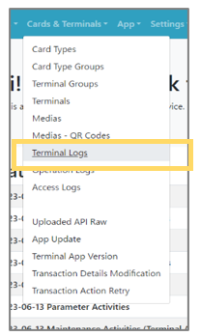 ソースの表示以前のリビジョンバックリンク文書の先頭へ Share via Share via... Twitter LinkedIn Facebook Pinterest Telegram WhatsApp Yammer Reddit Teams最近の変更Send via e-Mail印刷パーマリンク × 4. ログ参照 4.4. 端末ログ こちらでは、端末で行われた取引の履歴一覧を参照可能です。 Step 1:メニューから「Cards&Terminals」を選択し、リストから「Terminal Logs」を選択 Step 2:Terminal Logsのリストが表示されるので詳細をリストから確認する ja/termlogs.txt 最終更新: 2025/11/27 23:57by editor