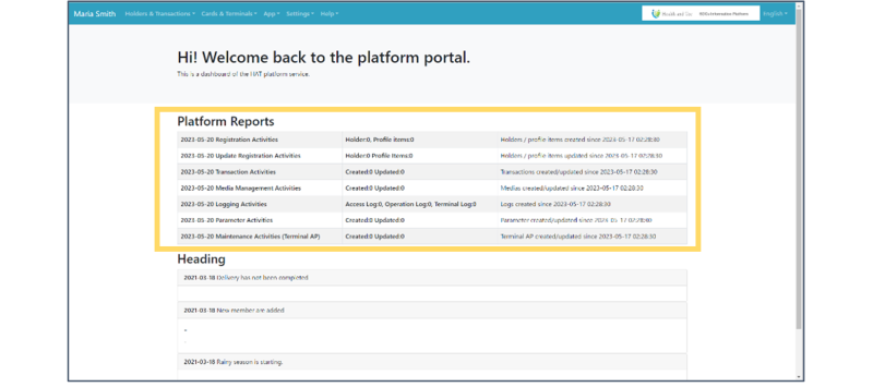 After logging in, the following TOP screen will appear, and you can check the number of activities in the past 3 days in “Platform Reports”.