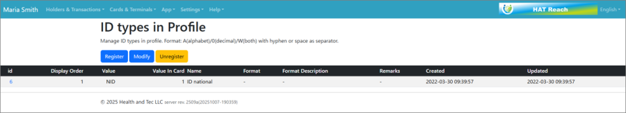 This page allows you to view, edit, and delete list of ID types of profiles.