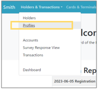![]() | Step 1: Select “ Holders & Transactions ” from the menu and select “ Profiles ” from the list. |