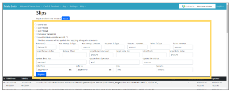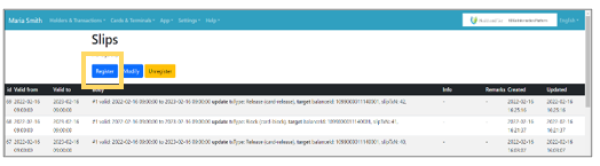 | Step 1:Click the “Register” button on the top page of slips. |