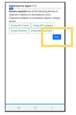 ![]() | Step 3:Once the card is accepted, the survey screen appears. Select or enter your answer and tap the “Next” button. |