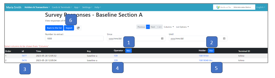 ![]() | Step 2: The selected key of responses will be displayed in the list. Click “Columns” to show or hide items. |