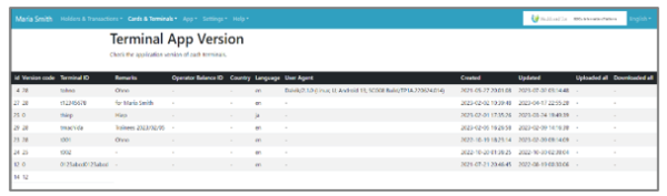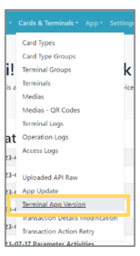 ![]() | Step 1:Select “Cards & Terminals” from the menu and select “Terminal APP Version” from the list. |