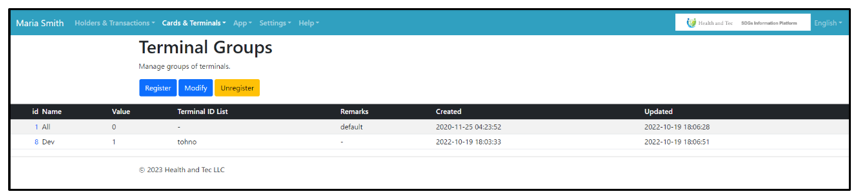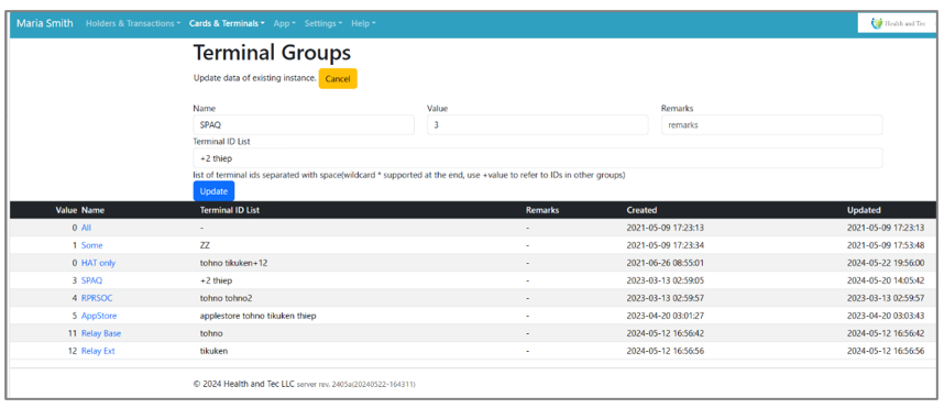 Terminal groups are defined in the “Terminal Groups” menu. Groups are used for menus and pricing as a limitation.