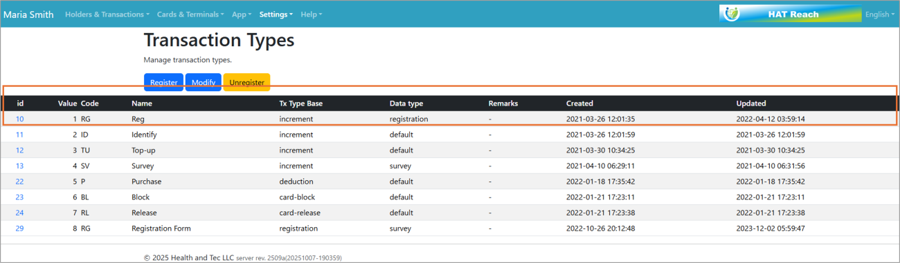| Id | ID assigned to Transaction Types |