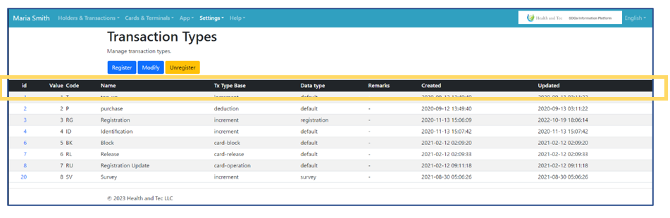 | Id | ID assigned to Transaction Types |